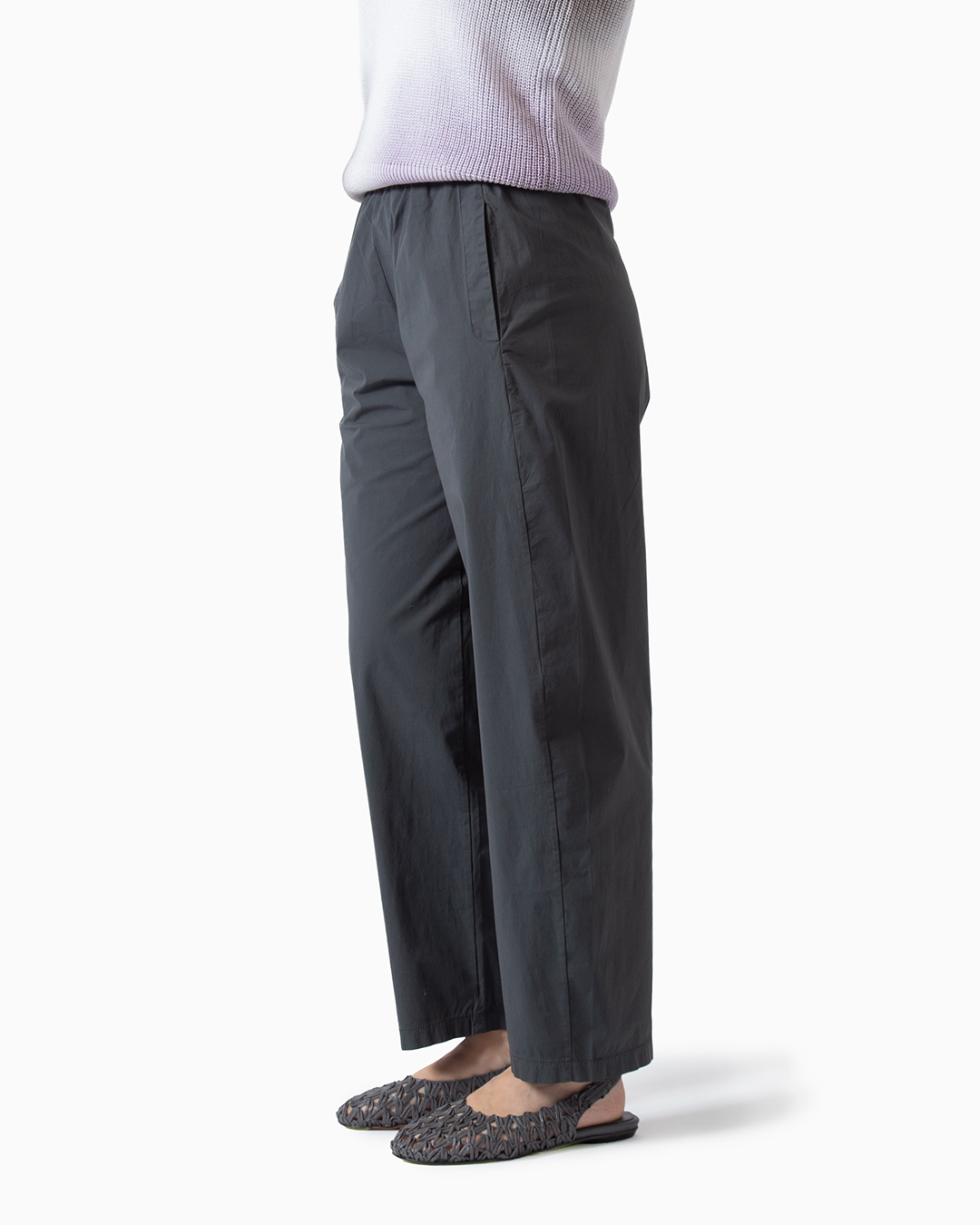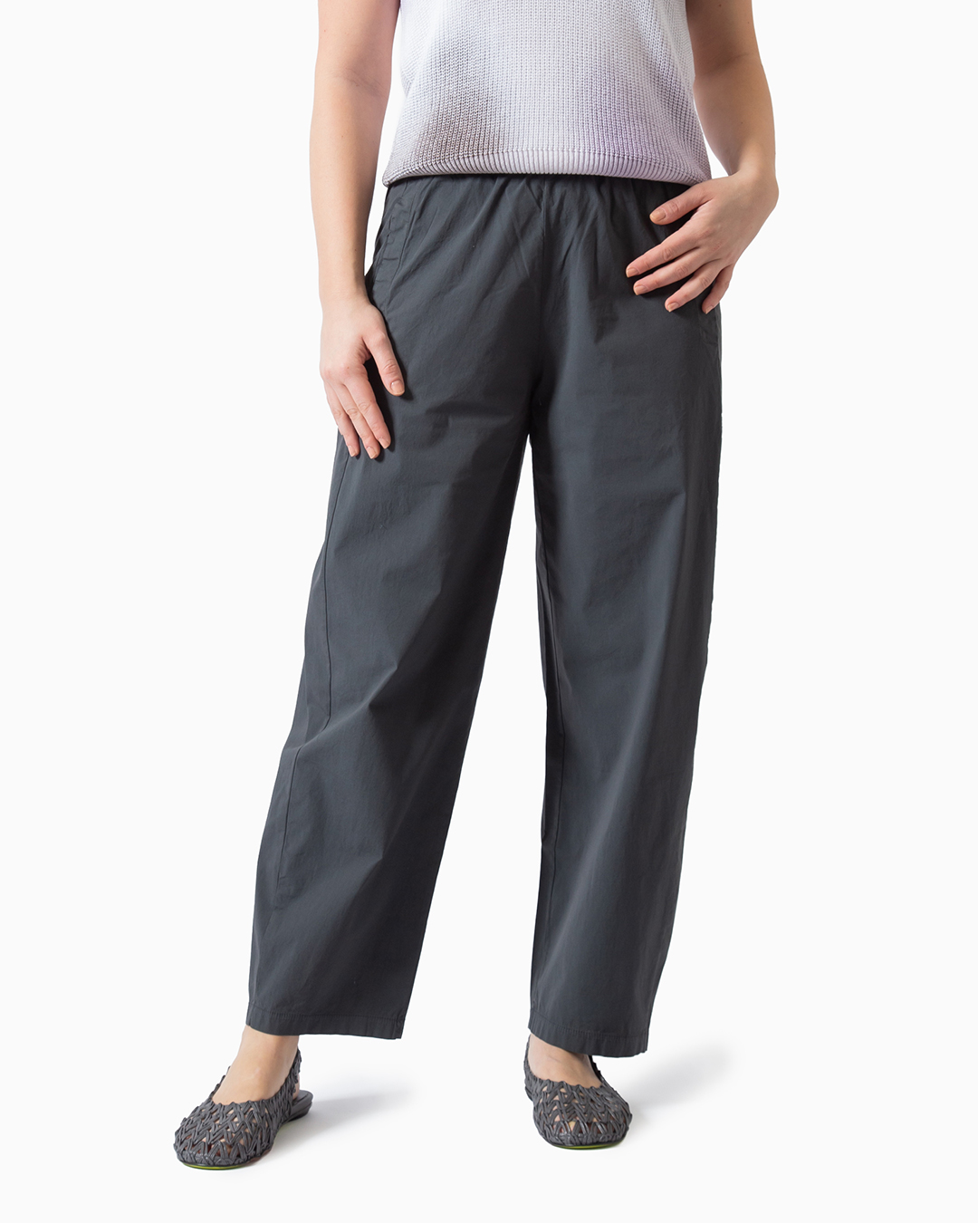 Pantaloni con vita elastica e tasche laterali in cotone. Pantaloni tinti in capo artigianalmente. Composizione: 98% cotone, 2% elastan. Made in Italy.