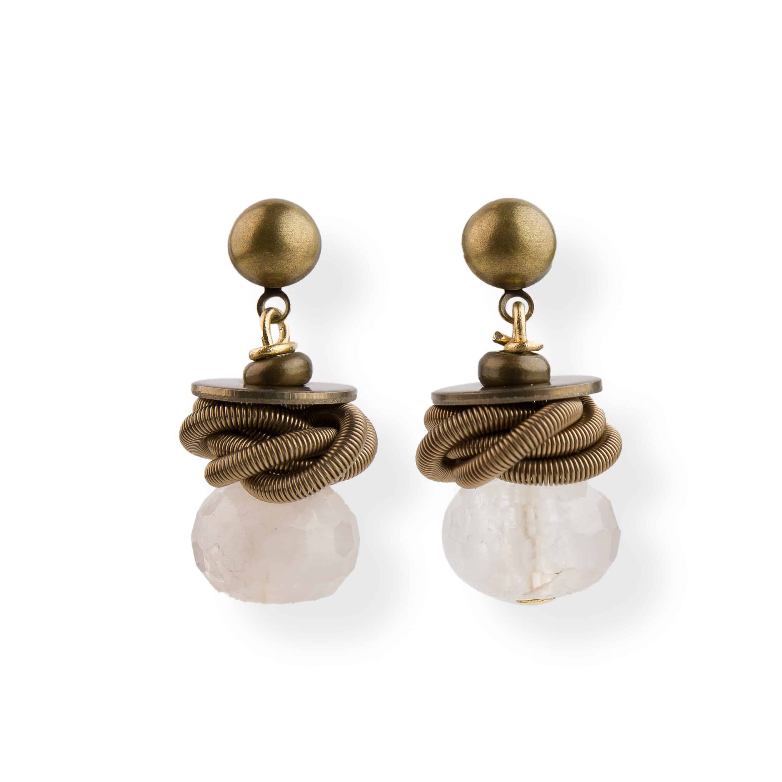 Design con intreccio di molle color bronzo con pietra di quarzo.