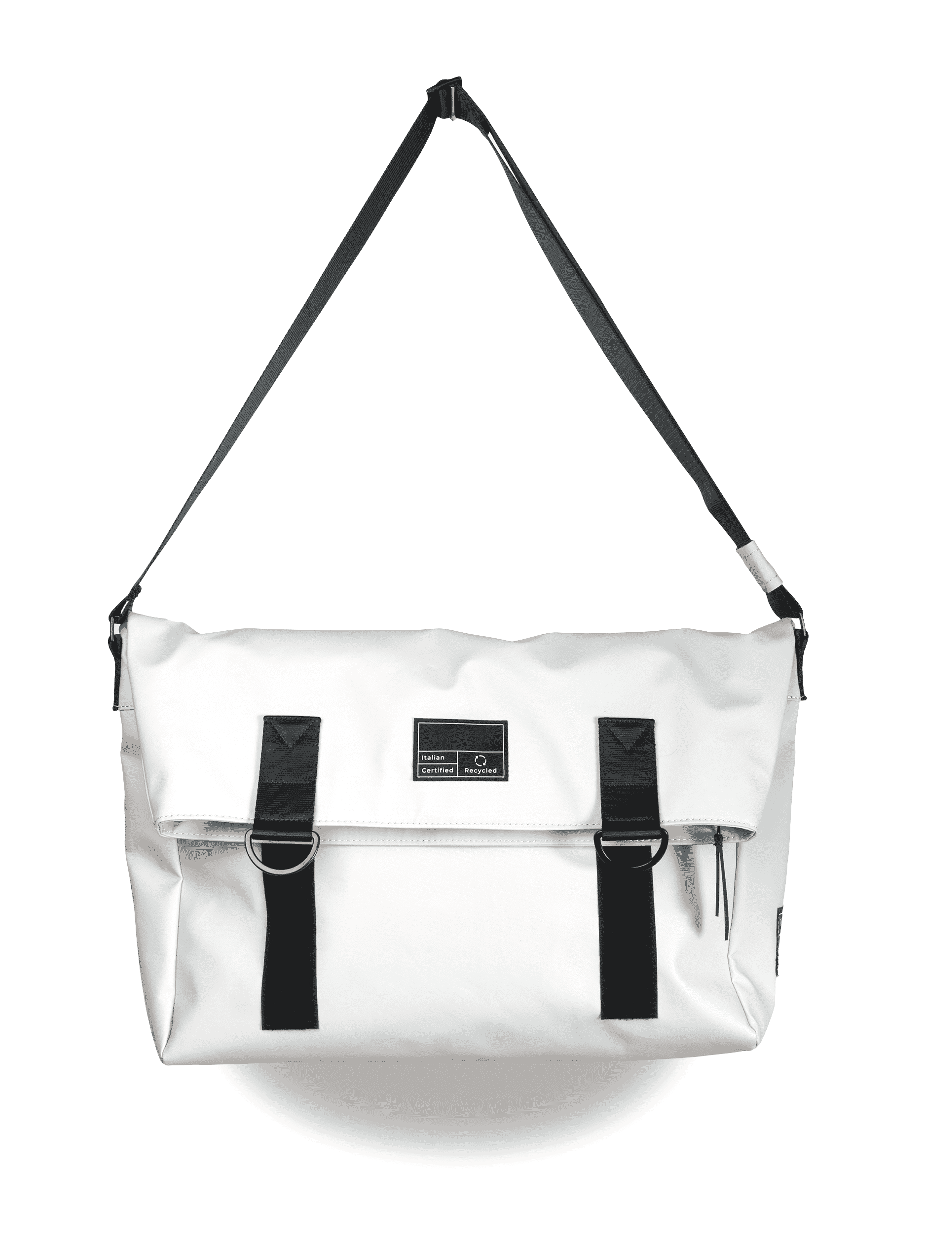 Questa borsa nasce da un progetto di sostenibilitร , nello specifico รจ stata prodotta riciclando le bottiglie di plastica.