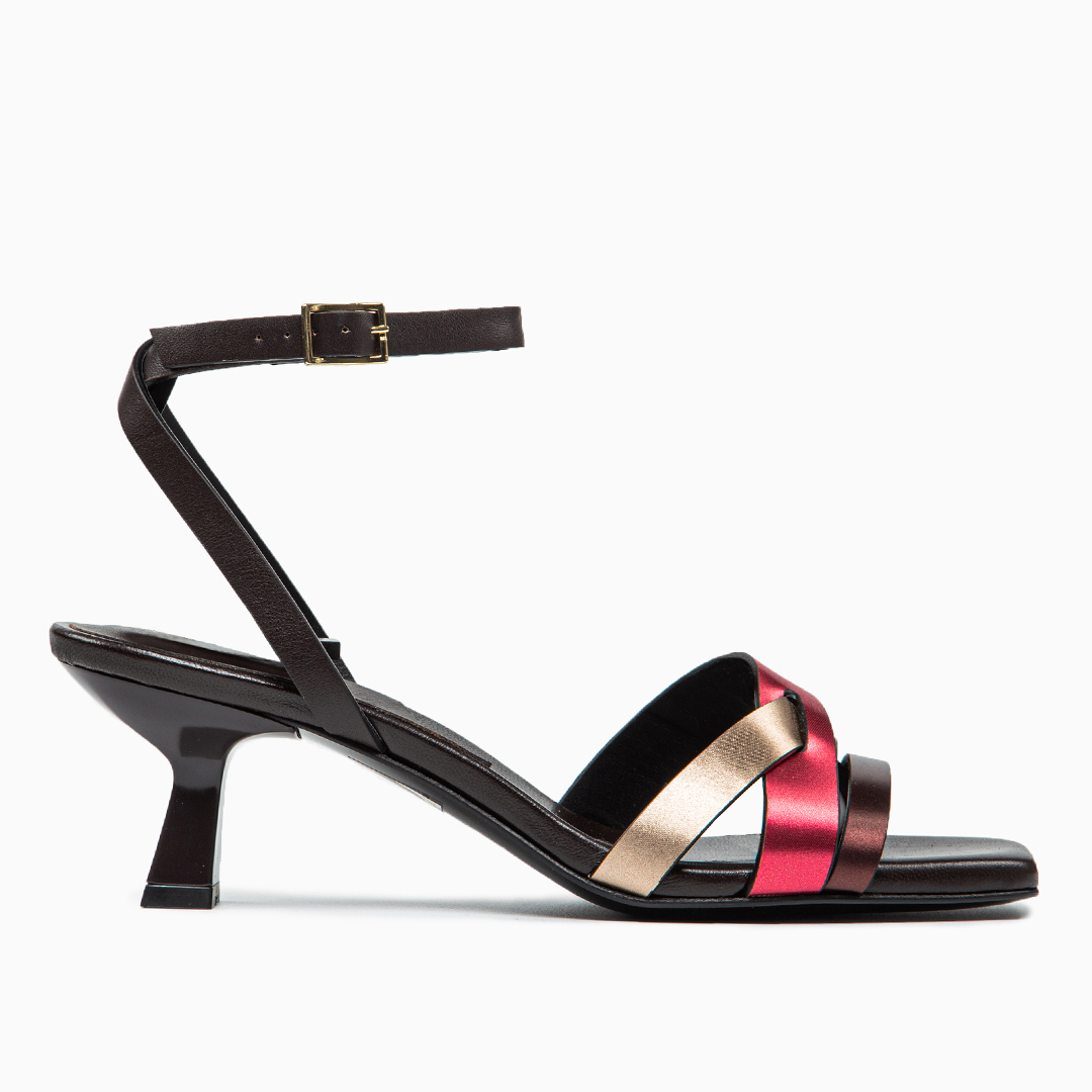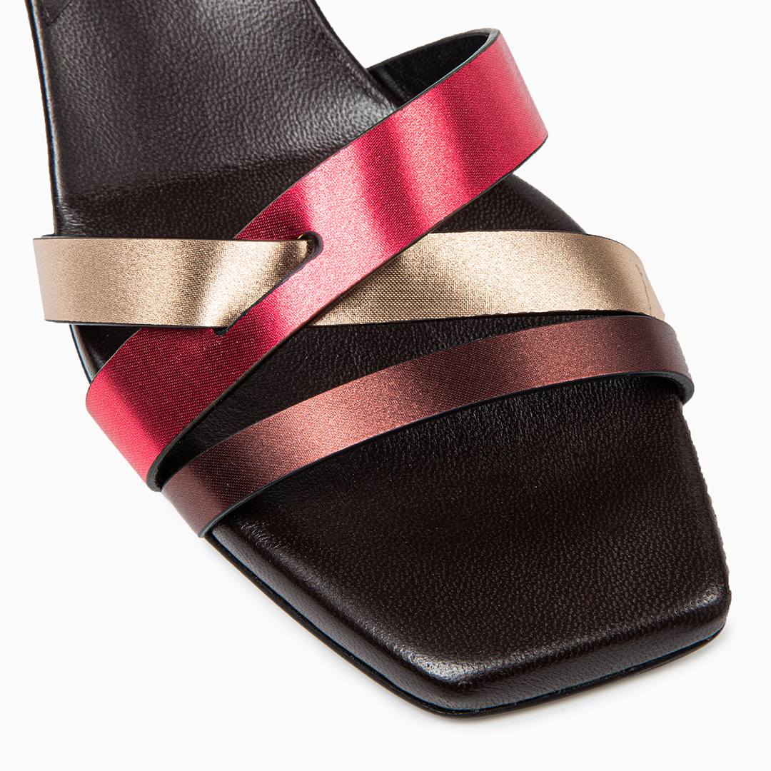 Sandalo in pelle multicolor con fascia a Incrocio sulla tomaia.