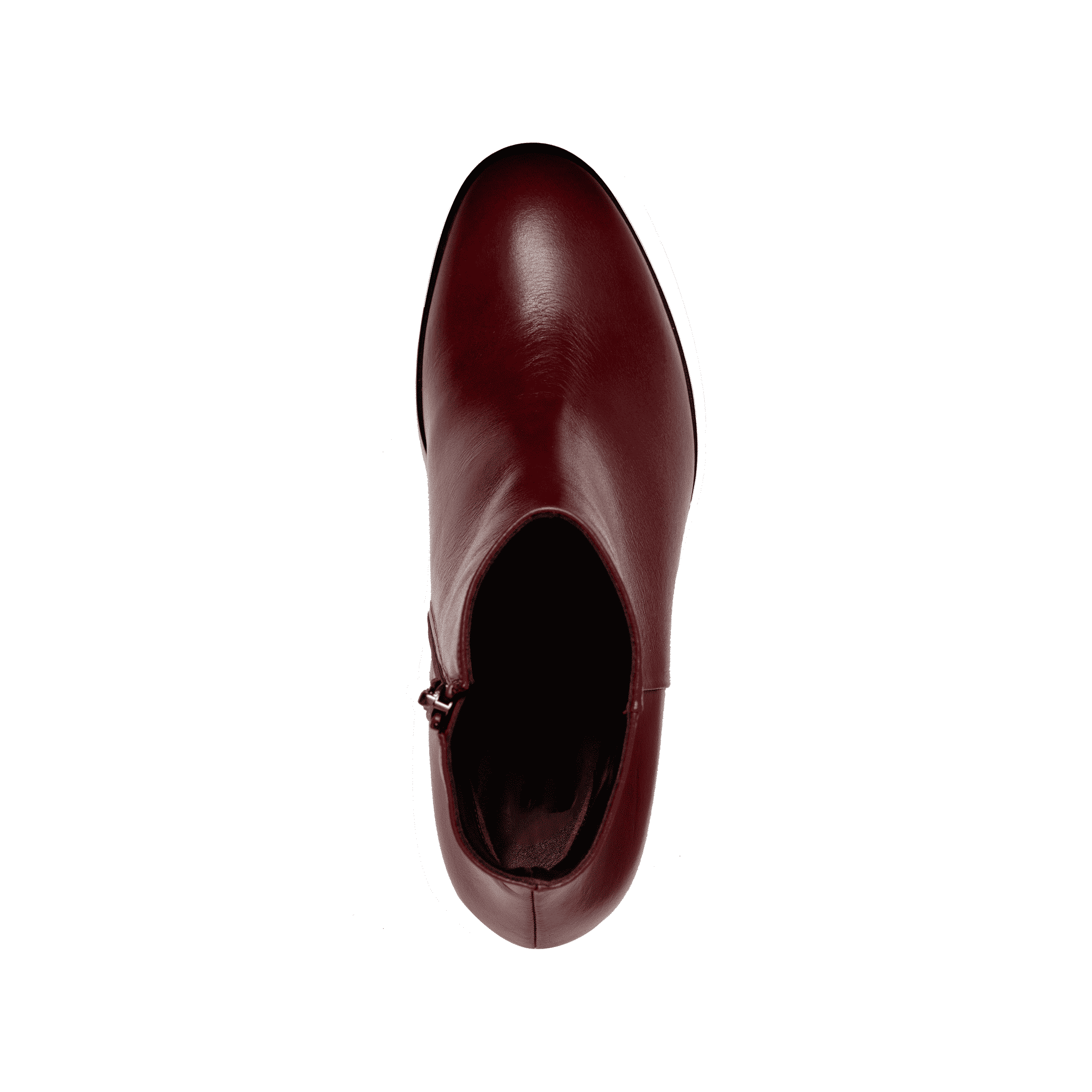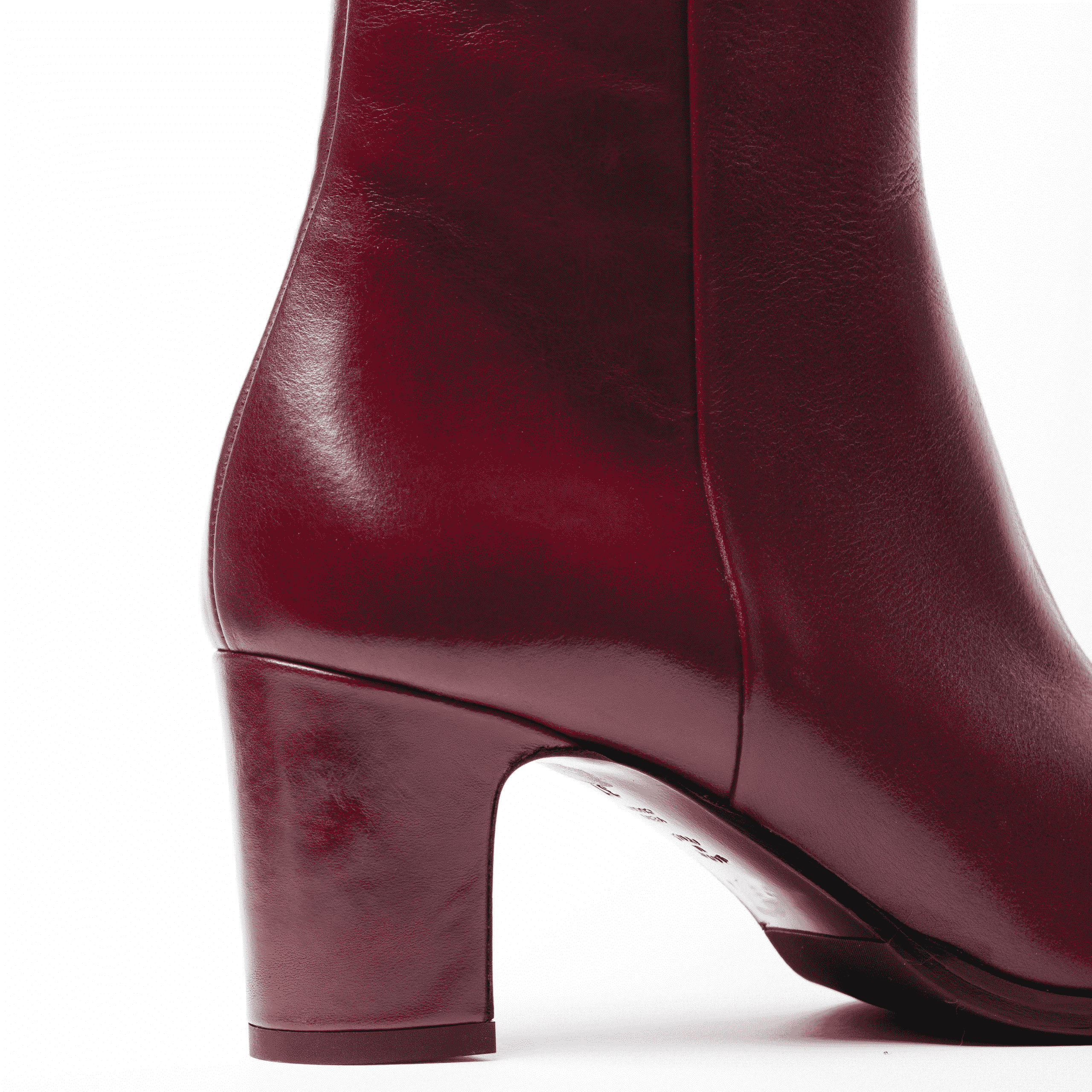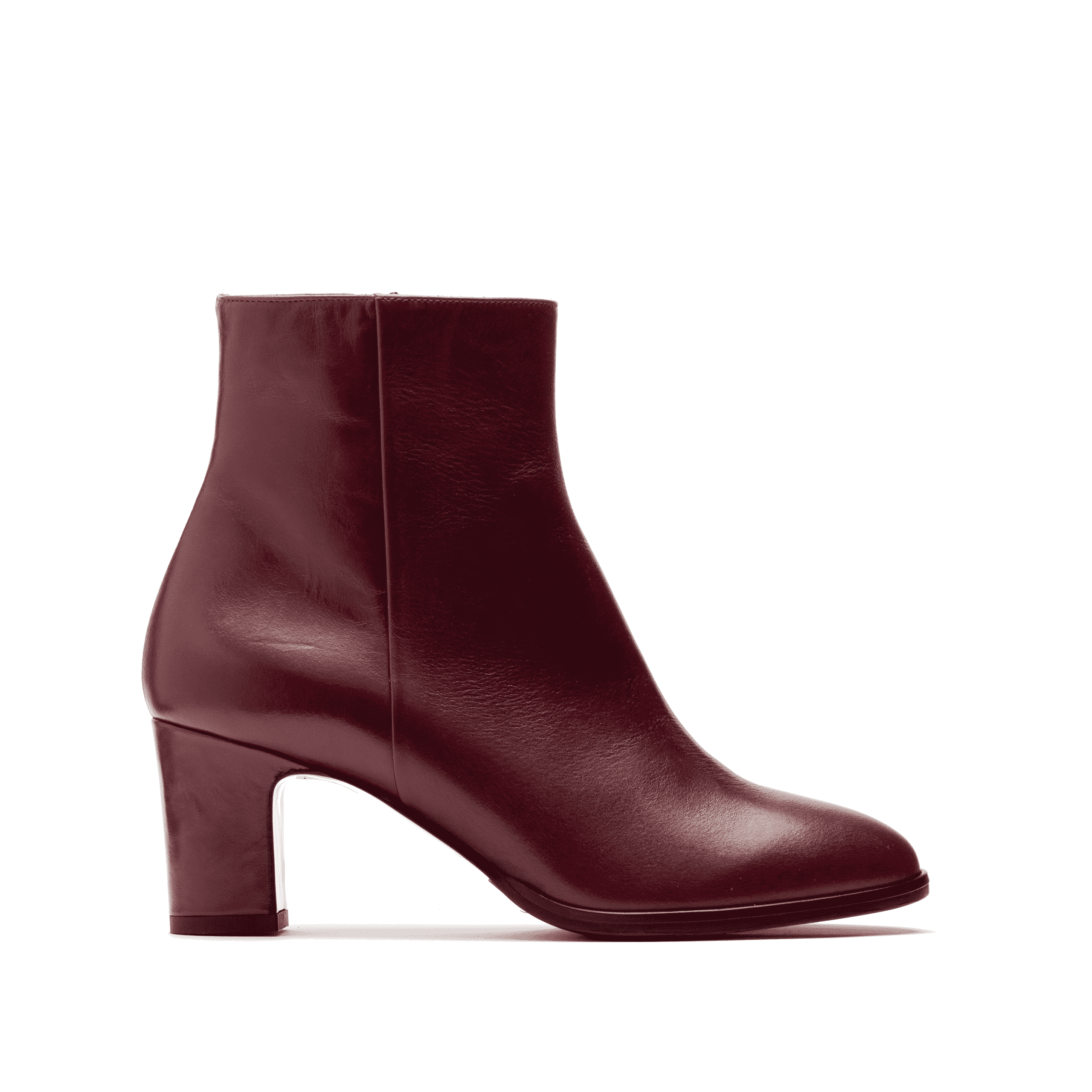 Tacco rivestito in pelle vinaccia alto 6,5 cm.