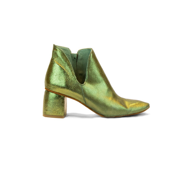 Tomaia esterna in pelle laminata craccata color verde kiwi.