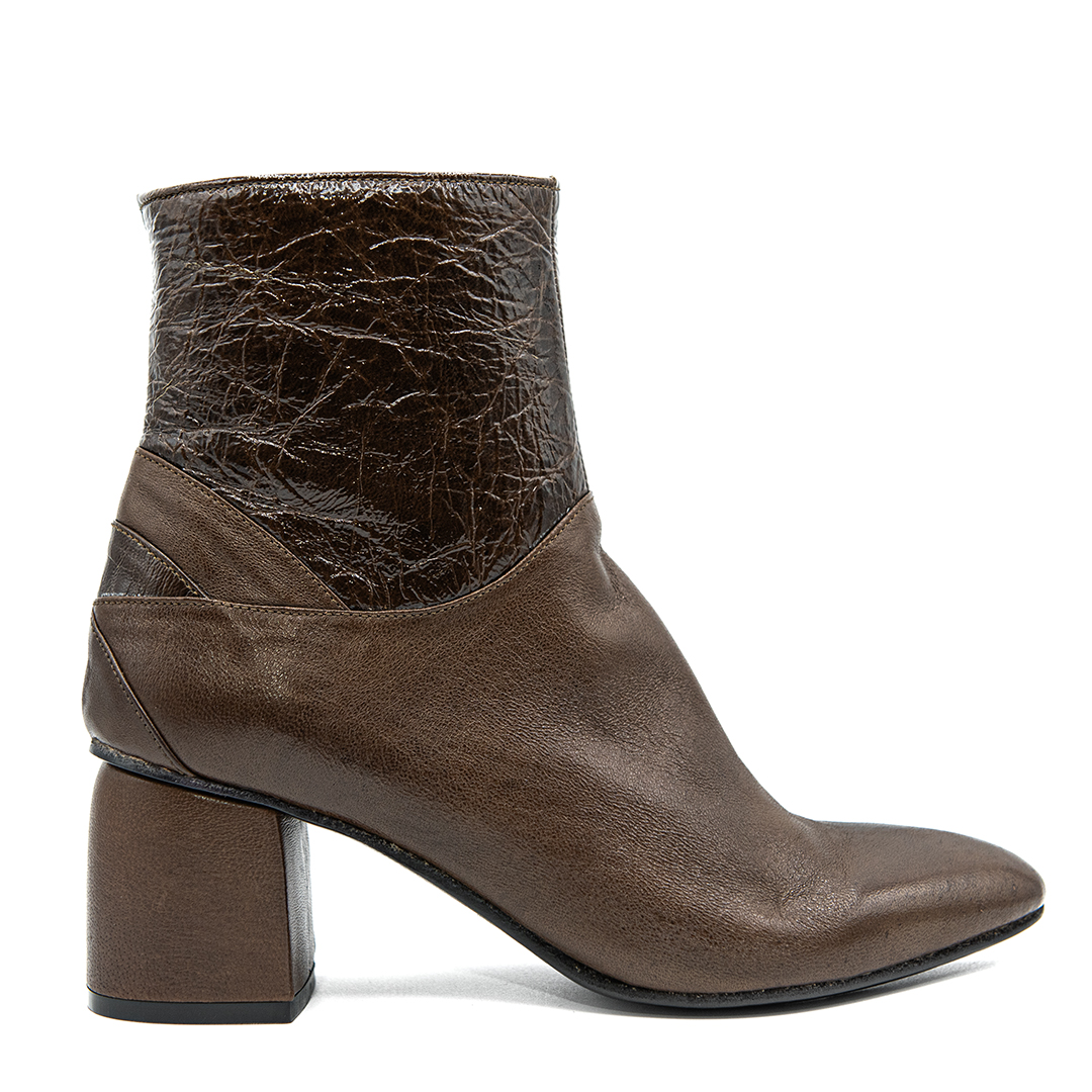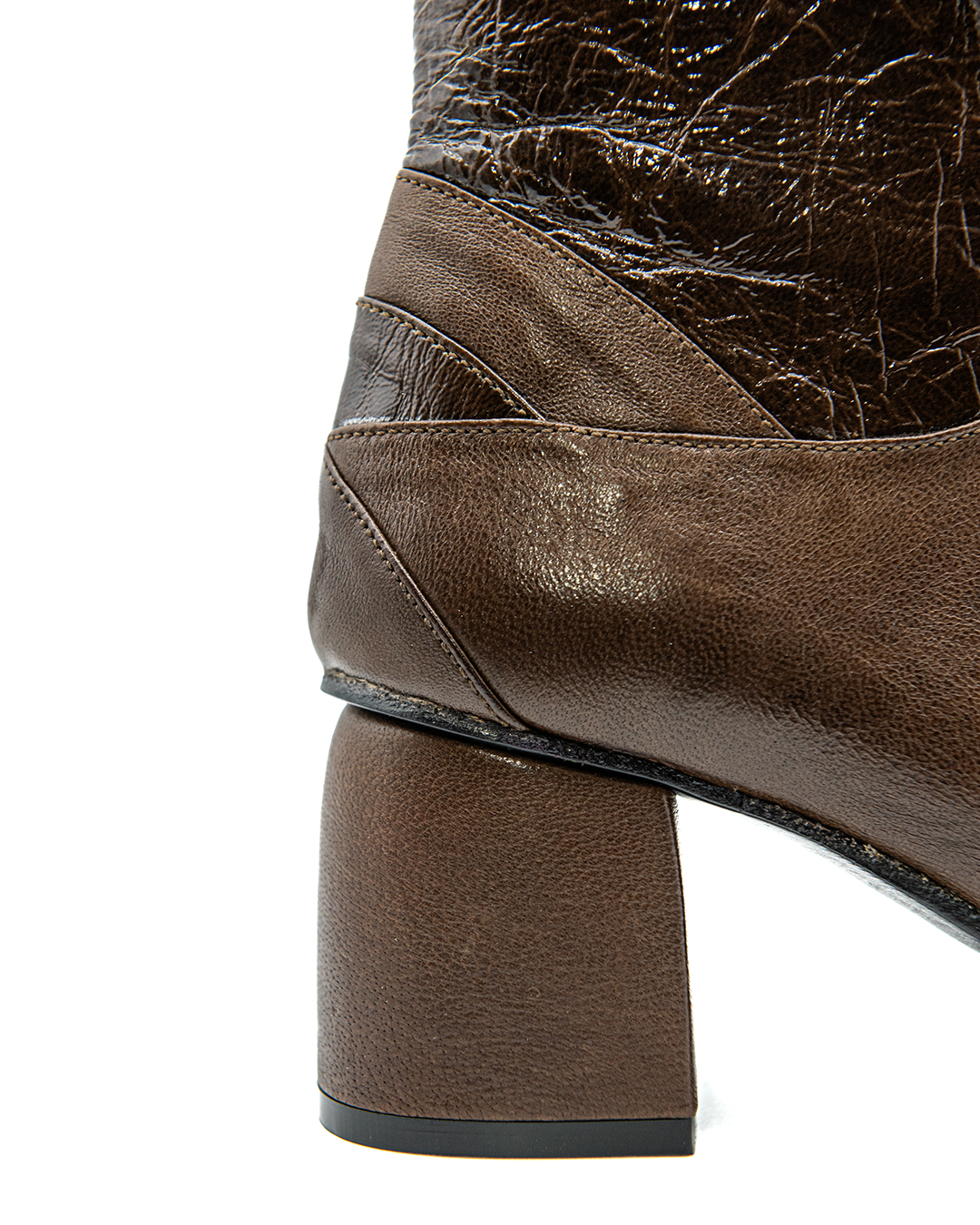 Tomaia in pelle opaca e lucida effetto stropicciato.