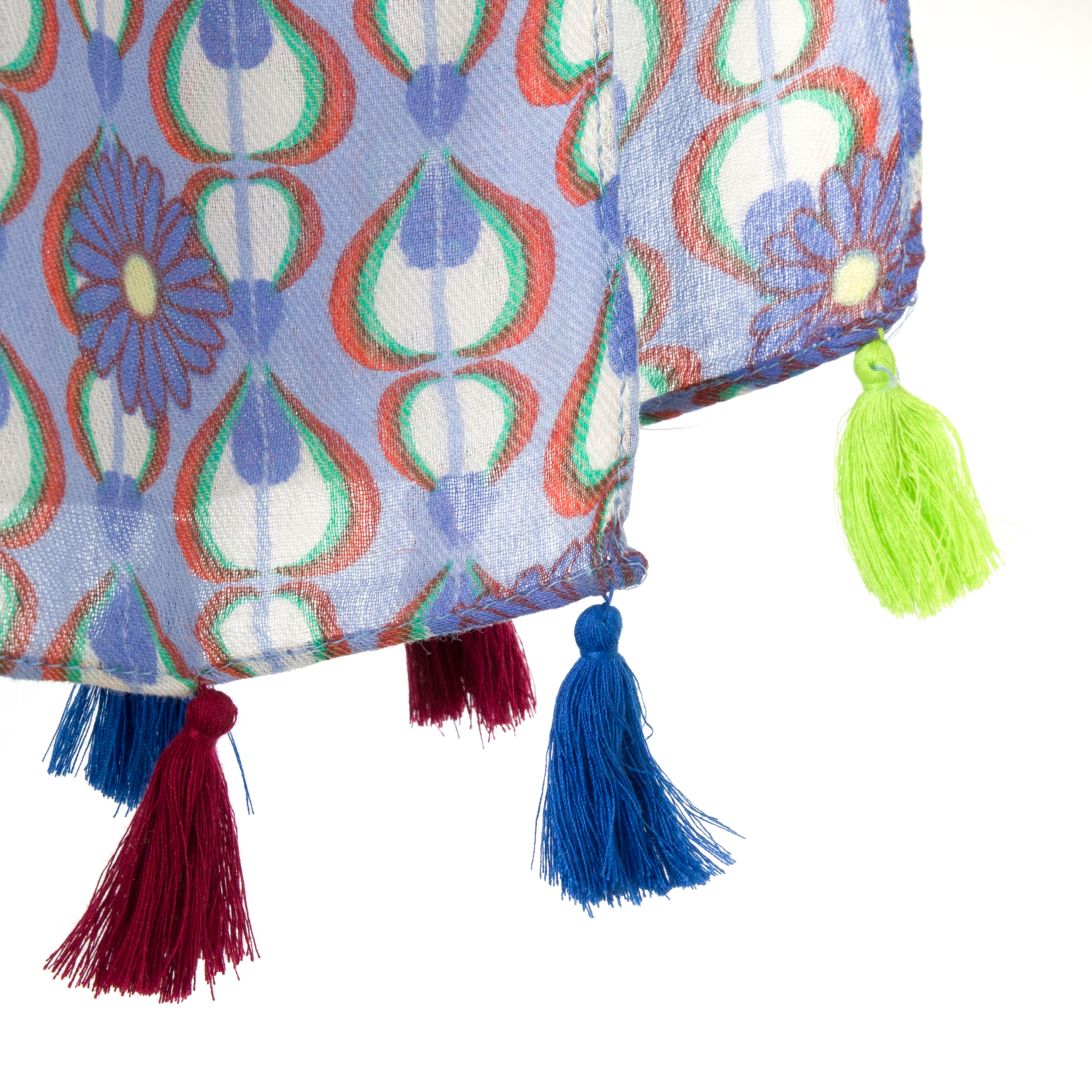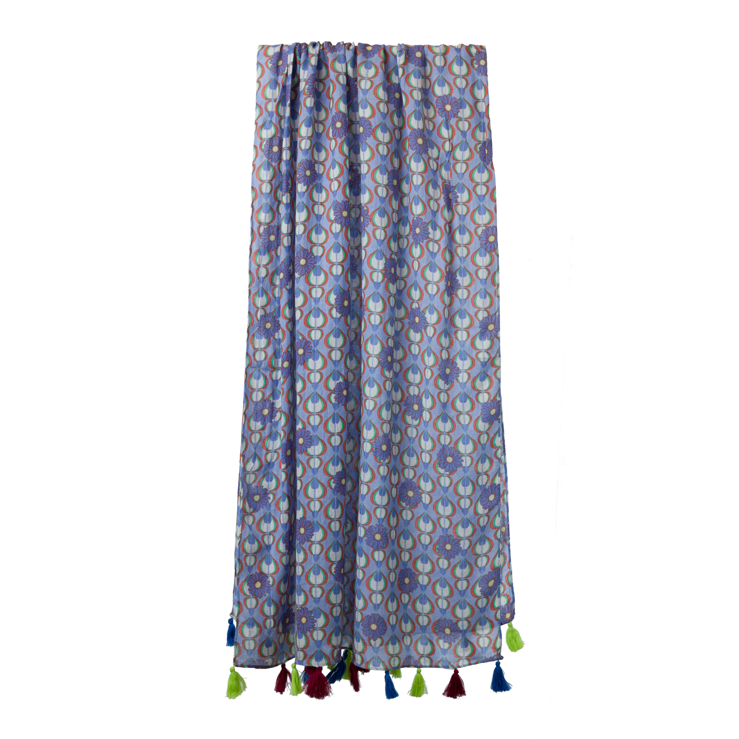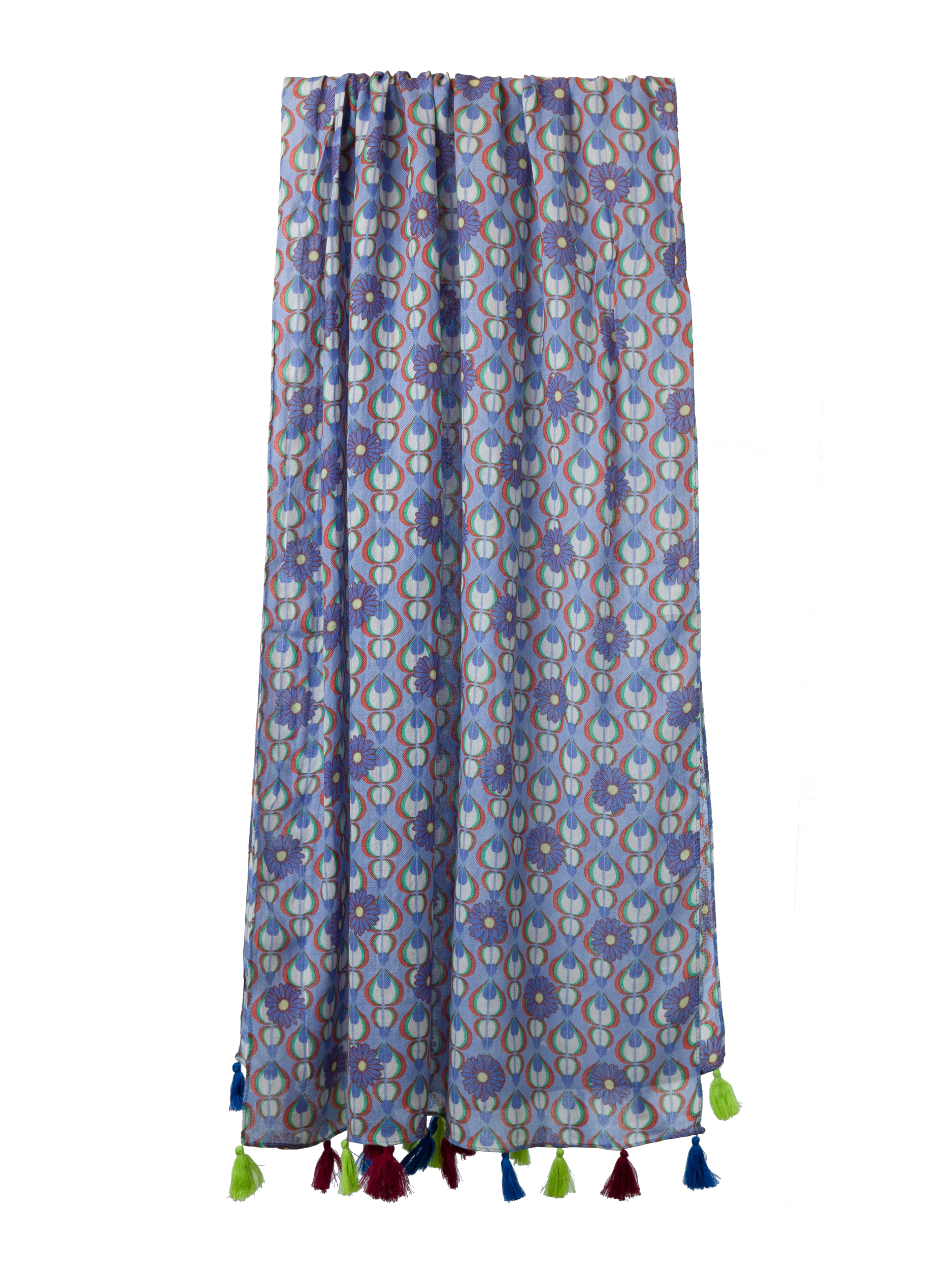 I colori presenti nella stola sono: azzurro polvere, blu, arancio, verde, bianco latte.