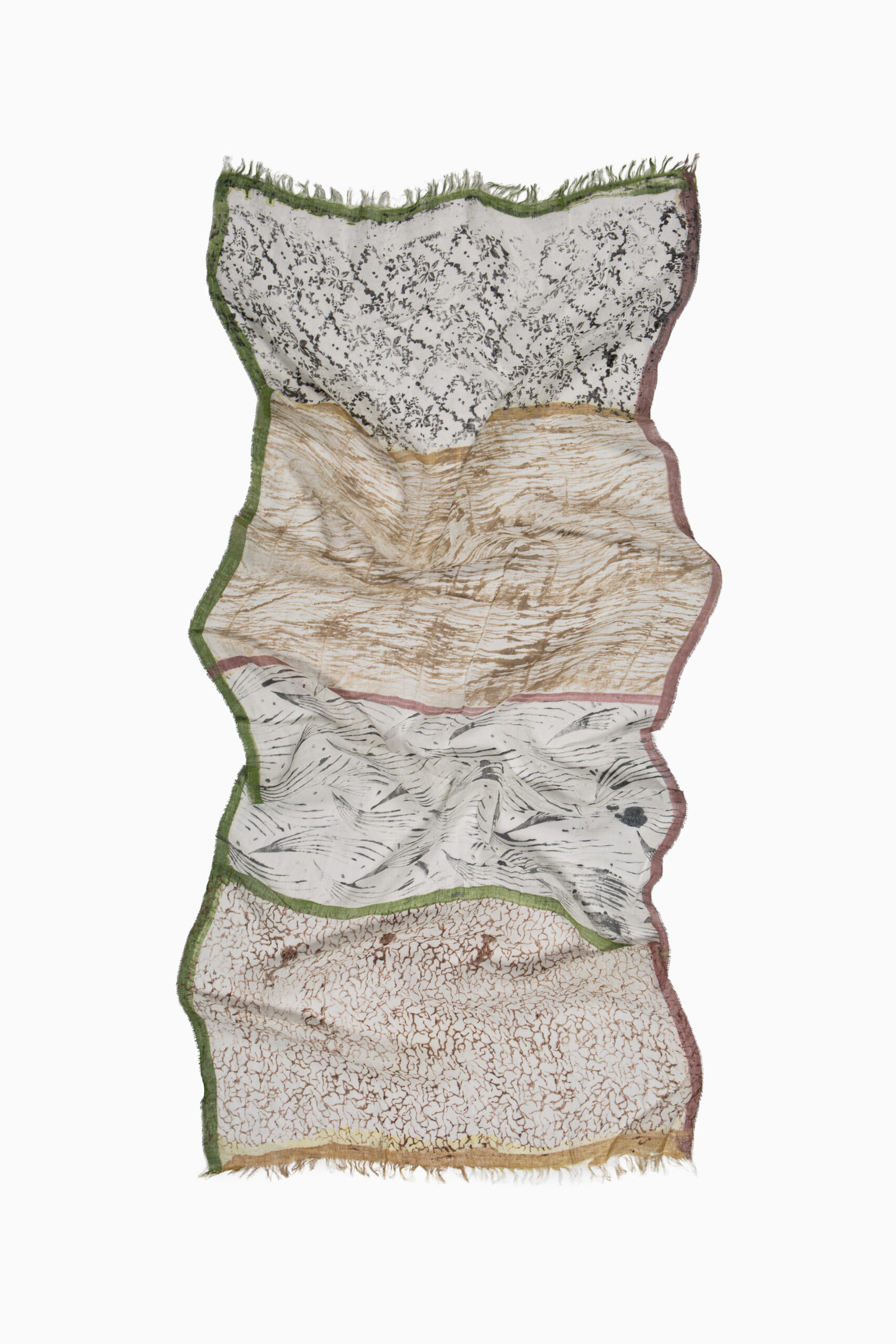 Sciarpa multicolor in lino dipinta a mano.