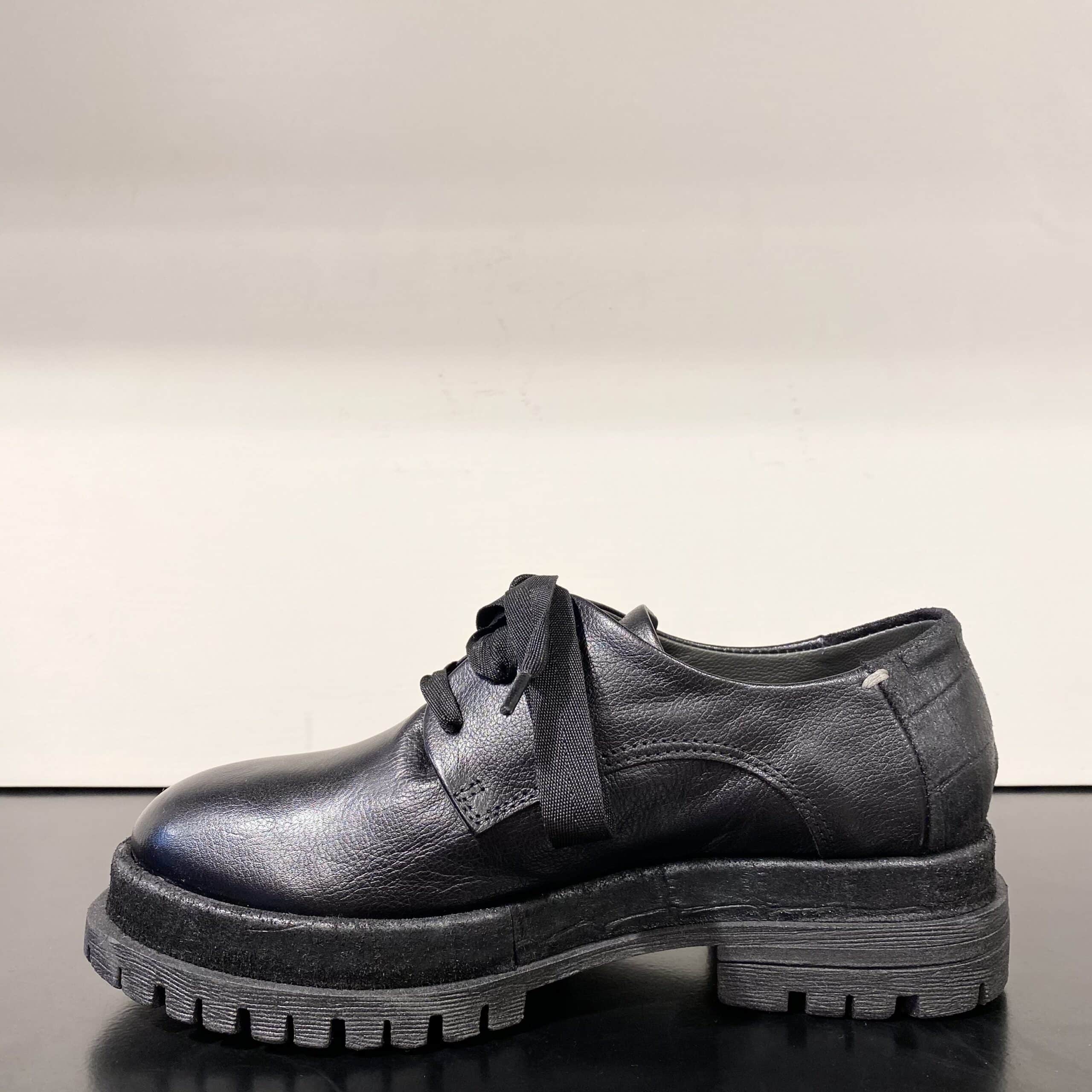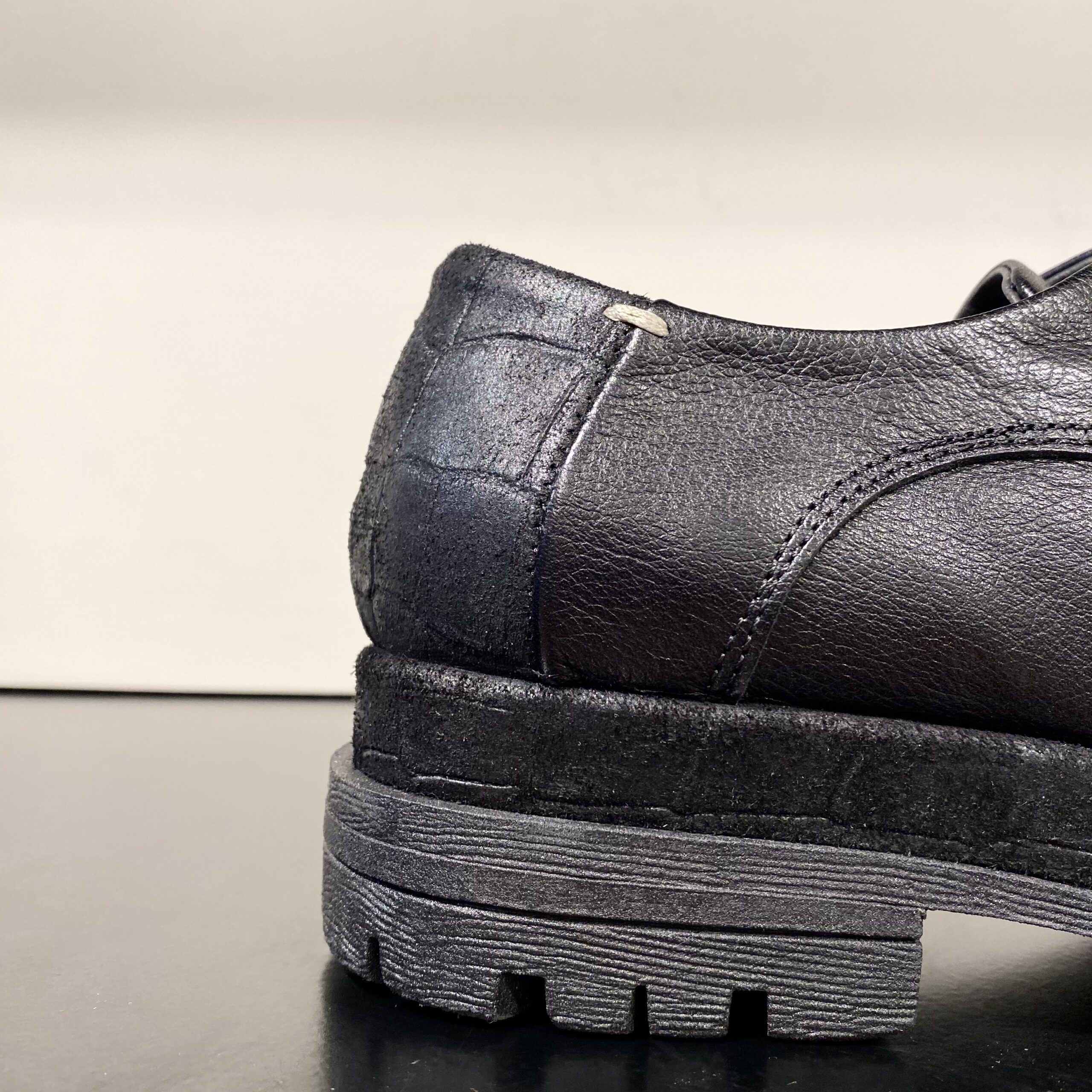 Tomaia esterna anteriore in pelle leggermente martellata.