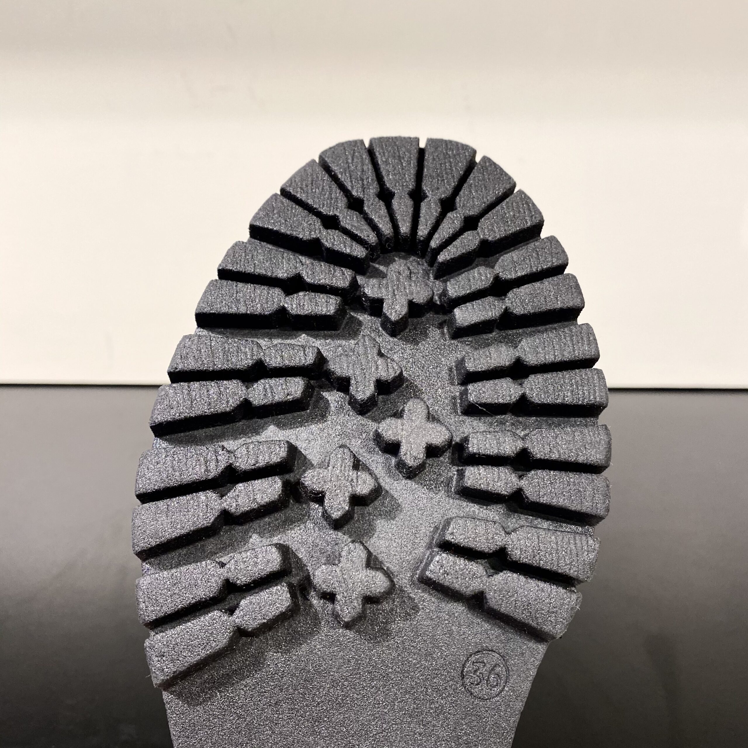 Fondo in gomma più contorno in camoscio stampato, altezza 4,2 cm.