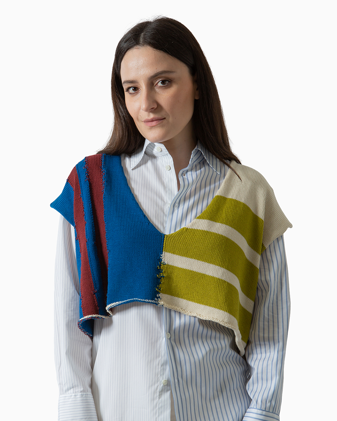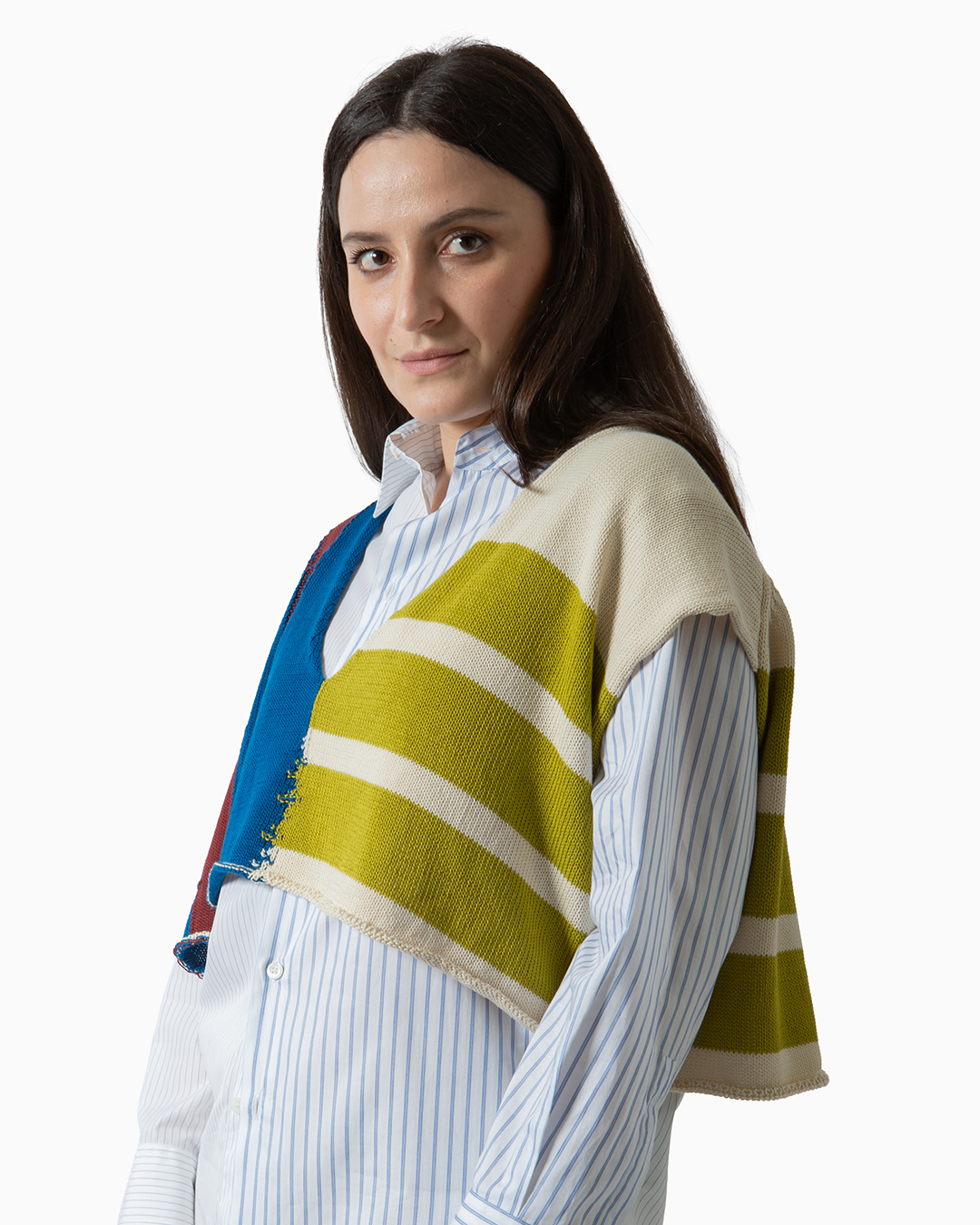 Top in maglia in cotone biologico. Fit corto e ampio con scollo a V profondo. Maglieria interamente realizzata in Italia.