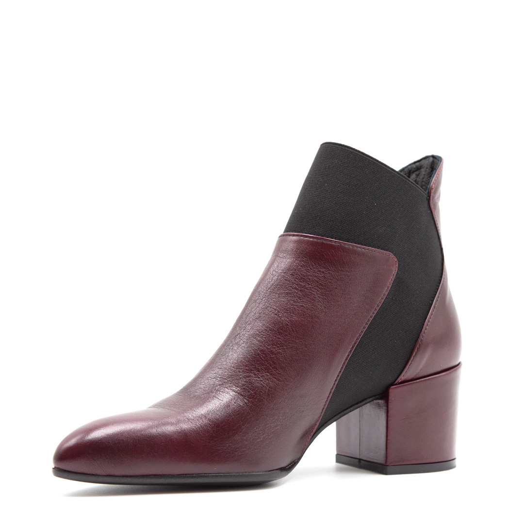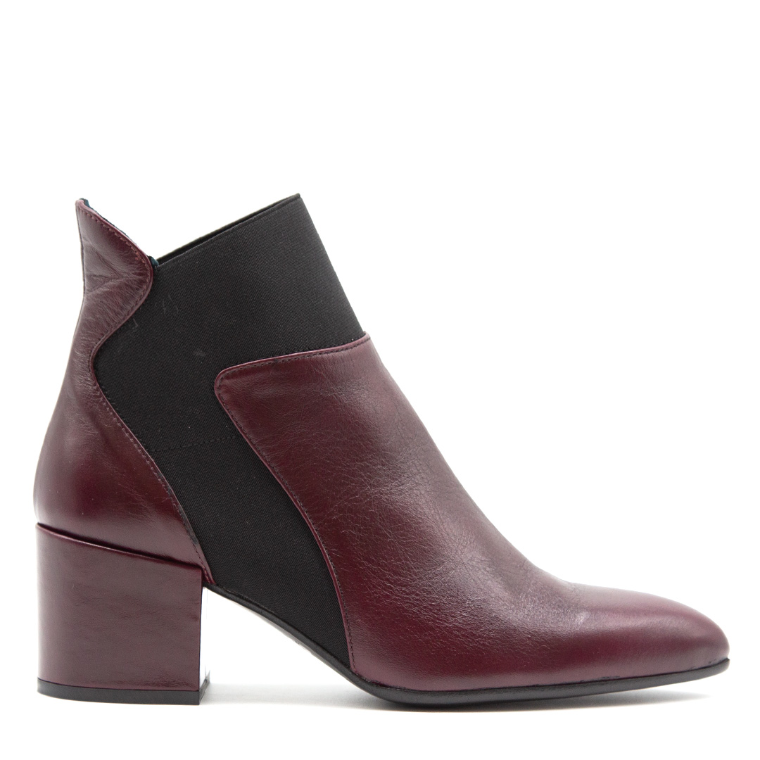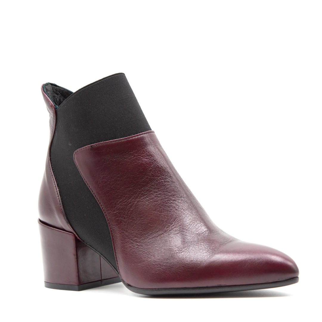 Tronchetto in pelle color bordeaux con inserti elasticizzati.