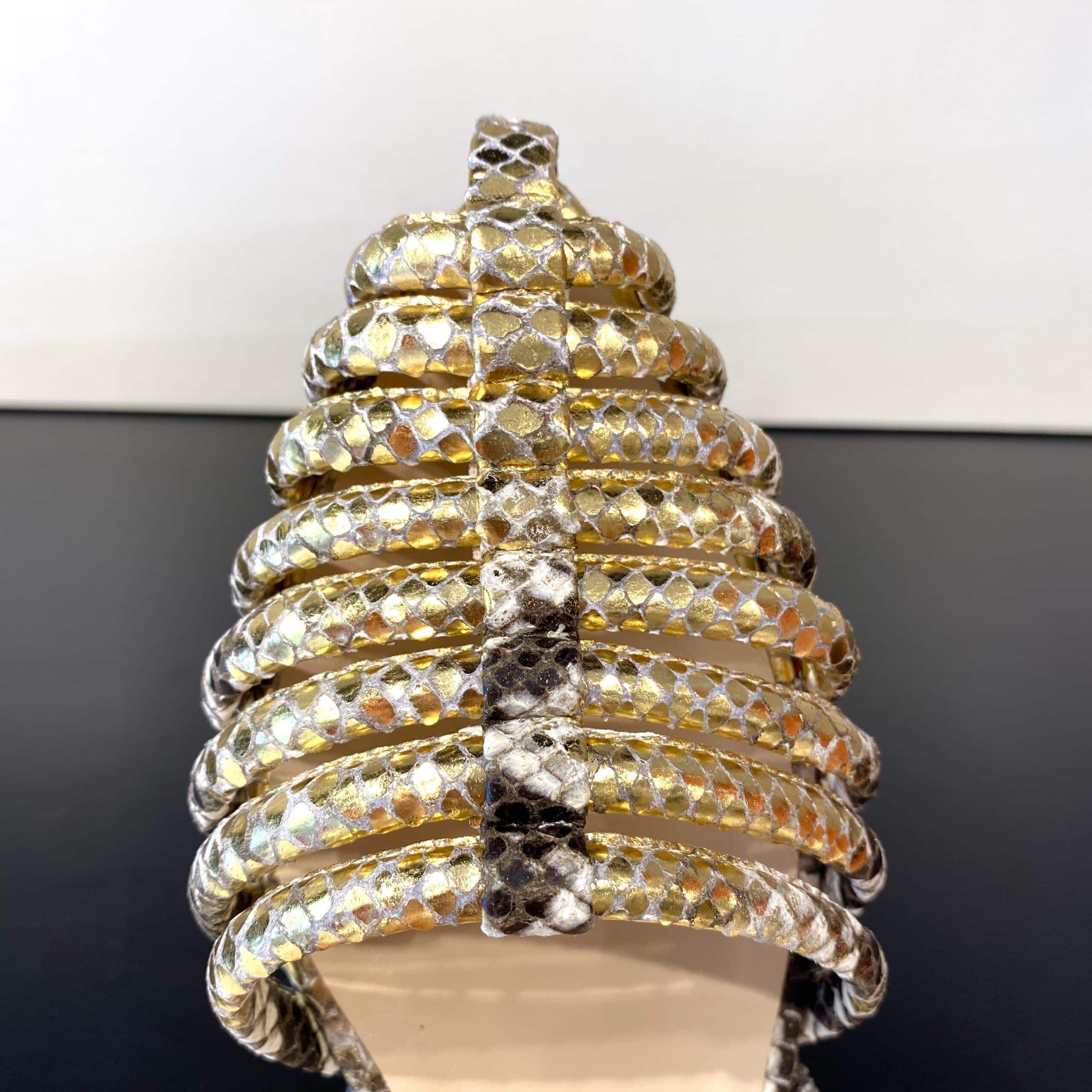 Cintino regolabile con elastici nascosti foderati in pelle stampata.
