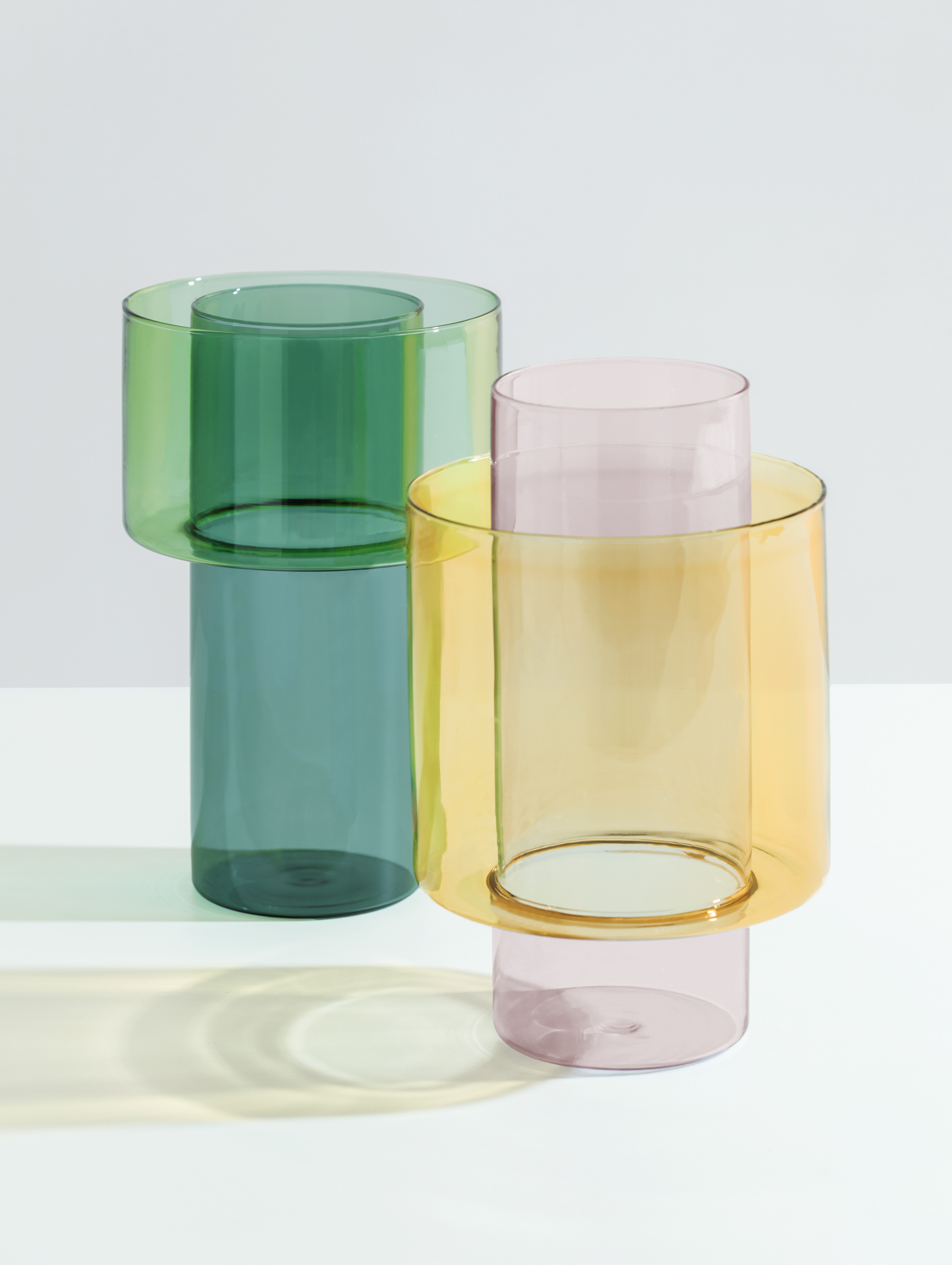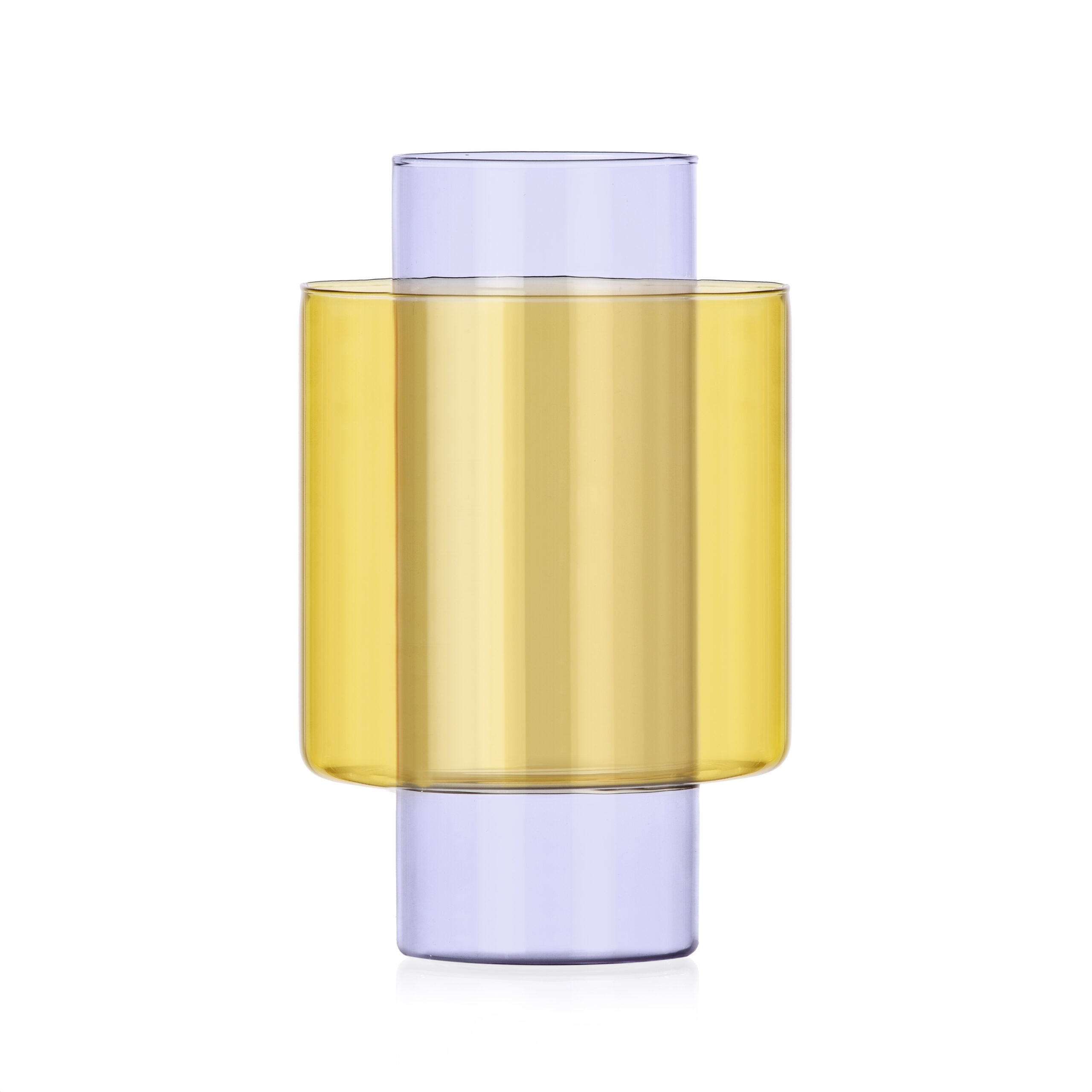 Vaso realizzato a mano e modellato a lume con vetro borosilicato. E’ un tipo di vetro resistente al calore e agli sbalzi termici. Dimensioni: H 21 Ø 13 cm. Colore: bicolore lilla – giallo. Designed in Italy.