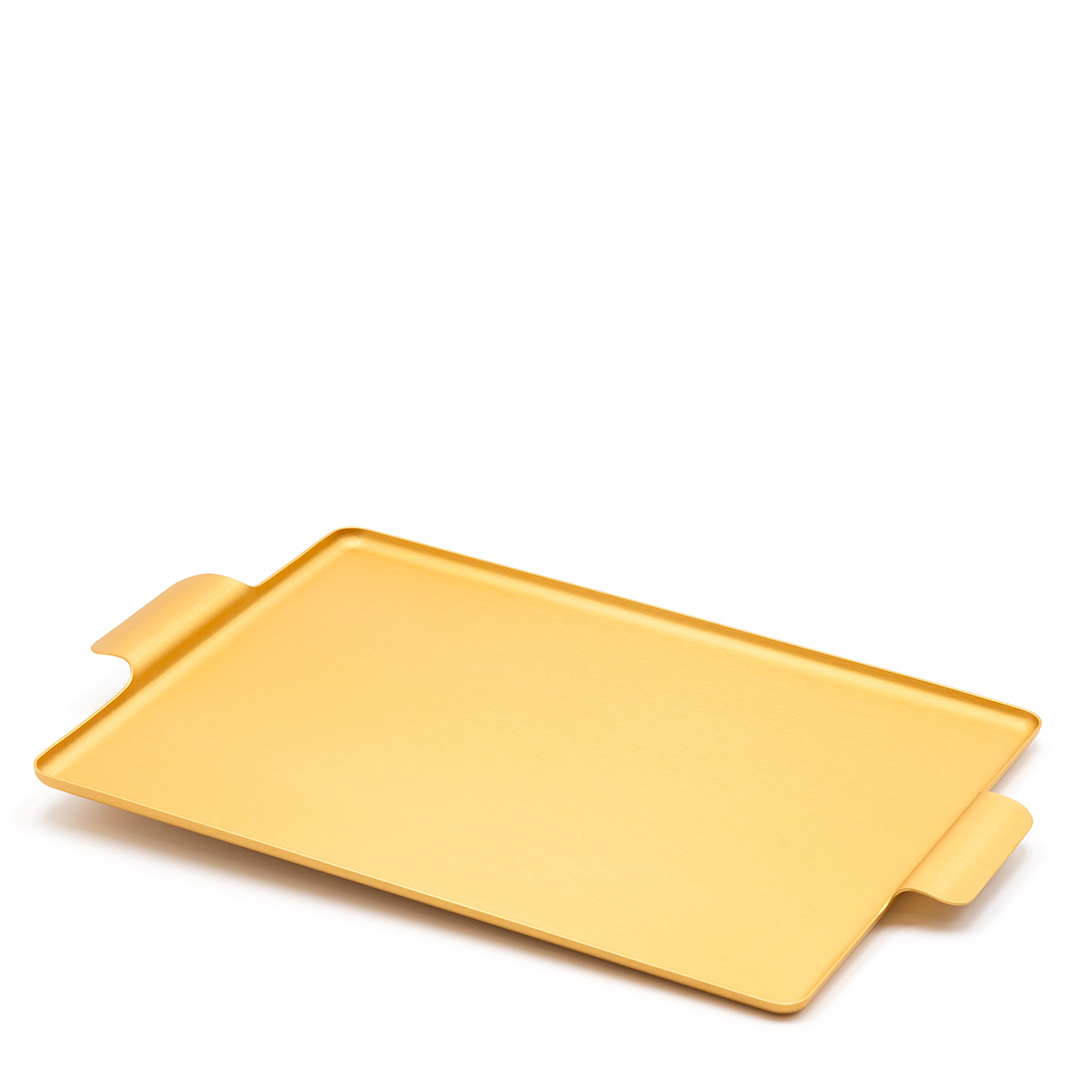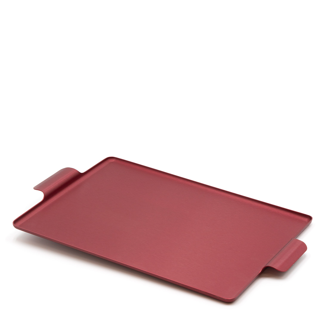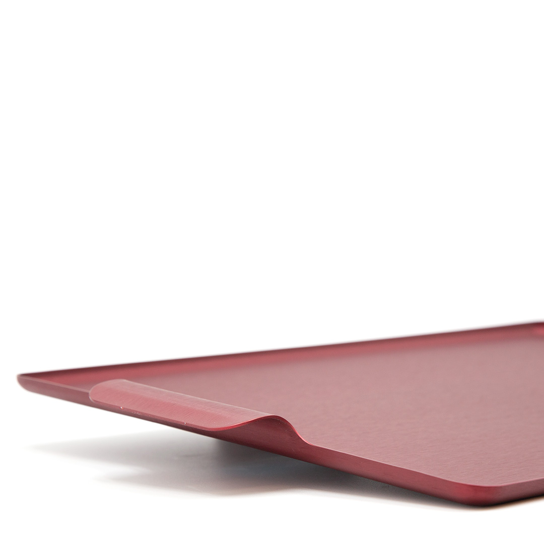 Vassoio leggero dal design contemporaneo e minimale in alluminio anodizzato, superfici spazzolate e rifinito a mano.