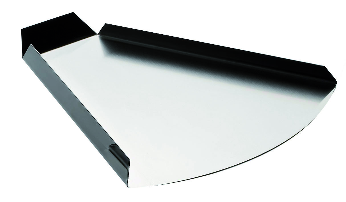 Vassoio triangolare in acciaio inox. dimensioni: 32 x 30 x 10 cm. made in Italy.
